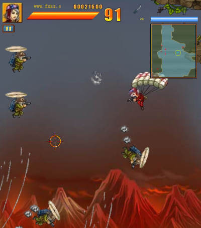 《合金弹头峡谷中文版》是一款FLASHA动作第三人称射击游戏。这一次是在大峡谷中执行任务,你要在降落伞上控制并攻击敌人。