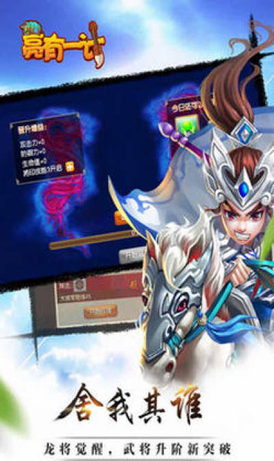 国民级三国策略卡牌手游《亮有一计》是成都多元互动网络最新出品的手游大作。由国内顶级画师打造最炫中国风原画,U3D引擎重度打造的百种3D三国武将渗入剧情还原经典三国历史,独创的多种策略关卡以及更多有趣的玩法让你彻底告别无脑手游,体验真实三国的波澜壮阔情景。