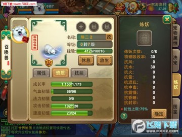玩家在主线关卡当中会得到各类型的炼妖石。通过炼妖,玩家可以提升召唤兽的各类抗性。但是要注意的是,召唤兽自身的抗性上限不能超过75%。