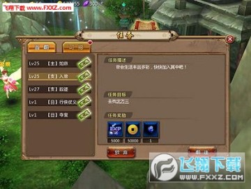 支线任务是进入主城洛阳之后接取的,打开可接任务列表便可以看到每天可接取的支线任务,完成支线任务有较为丰富的经验和金币奖励。