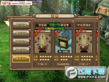 副本、装备强化、培养、挑战等等。每个任务完成有一定的金币、经验及帮贡奖励。