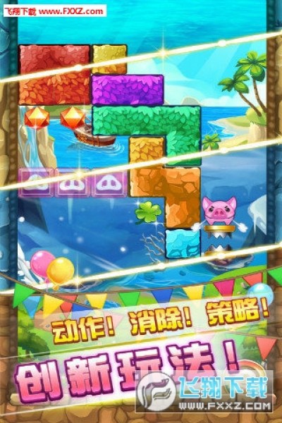 相邻的同色方块融合为一体。不同武器枪械攻击的方式,让方块的消除不再单调。