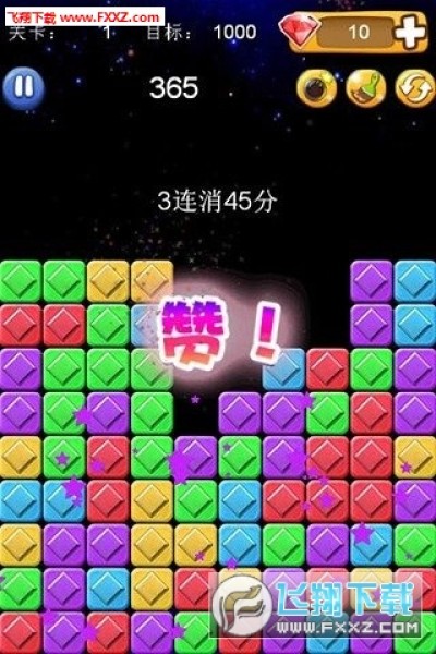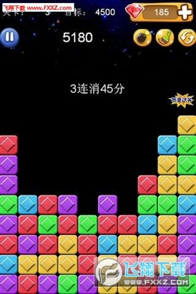 游戏的核心玩法是通过消灭星星来获得积分的关卡模式。 简单来说就是“消除”,没有时间限制,但是每一关有目标分数, 你同时消去的星星越多,就能得到越高分,最后剩下的星星越少, 得到的奖励越多.消除方法是,点击颜色相同成块的方块或者星星, 它就能被消除。同时消除的方块越多分值越高。你也可以尽量让所 有的方块被消除,会有更多得分。