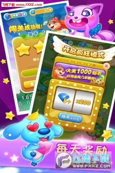 消灭星星救宠物游戏是一款画面设计精美的3D消除游戏,类似与一般的消消乐,玩家需要通过消除果冻解救被外星人困住的小宠物们,全新3D视觉,带你体验最炫酷的消除玩法,上百关卡拯救你的闲暇时光。