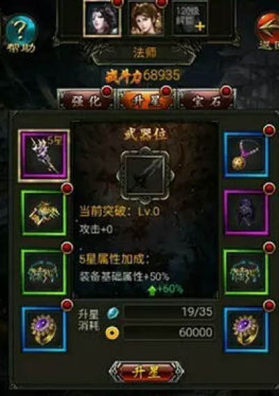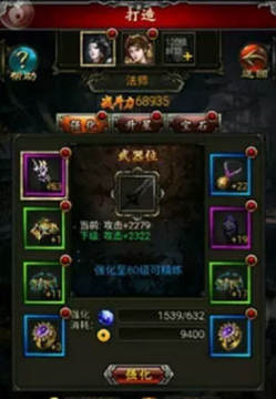 在打造系统中,分别有强化、升星和镶嵌宝石来提升武器的战斗力。