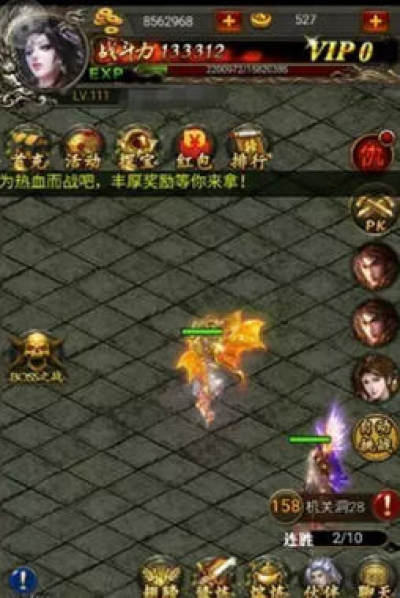 游戏的主要玩法是以挂机为核心的经营类玩法,同样的玩家,你可以选择开着游戏挂一整天,也可以选择自己动手操作,而后者的战斗力,当然也会高于前者。游戏中有打造系统,翅膀系统,元神系统等众多玩法供大家体验,用以提升自己的战斗力。