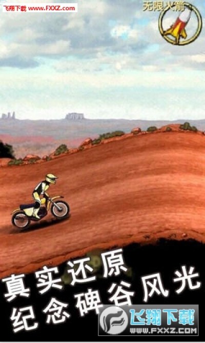 主要是以摩托车越野竞速为主,游戏中为玩家还原了美国西部象征纪念碑谷景色,更有专业装备、高空回旋以及摩托车之间的激烈追逐,玩家可以选择不同的摩托车来进行游戏。游戏各方面都做了提升,并且新增了绚丽壮观的新场景——高度还原的美国西部象征纪念碑谷景色。