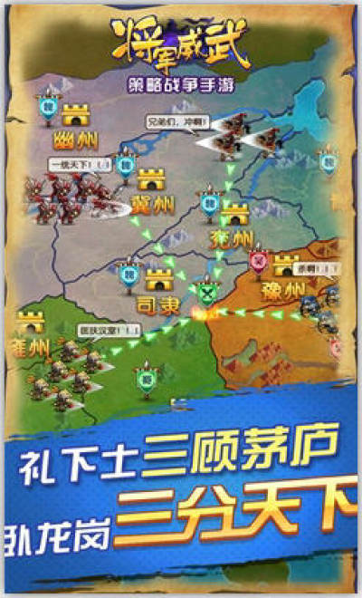 《将军威武》是一款即时互动三国战略游戏,针对16-35岁的用户群体开发的手机游戏。特别的反传统世界观,扮演大反派体验不一样的感觉。有着与传统手游截然不同的超重度养成设定。独创的三种层次的战争策略是本款游戏的核心玩法。还礼、简单且互动性极强的UI设定,加入大量的动画和漫画元素。与同类卡牌游戏相比,PVP的成分很多,同时也更加残酷,游戏中大量的材料和资源需要通过PVP系统产出。