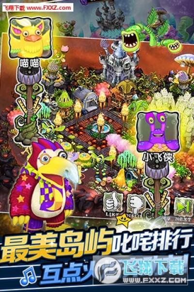 作为怪兽的粑粑麻麻,攒金币建房子,增加更多收入途径;为他们烘烤美味的食物是你的责任,亲手为他们布置舞台,亲自孵化和哺育这些可爱的怪兽宝宝:配种、繁衍出能够演奏更加美妙乐曲的全新怪兽物种,让你的乐队音色更加丰富多彩!用这些亲手培养的可爱怪兽们冲击排行榜,与小伙伴互动加速,为前来参观的小伙伴们演奏一曲难忘的音乐,让你的怪兽乐队红遍全球!