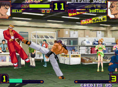 豪血寺一族斗婚又被称为豪血寺一族4,该作品也是该系列在NEOGEO平台上的首部作品由于更换了平台,画面方面的确是好了一些,游戏讲述了西西公主比武招亲的故事(实际上是她哥哥在比武招亲…),本作品除了延续以往的格斗风格之外,还增加了“裁判(黑子)”和“过招”的特色,以及5个新人物,4个《龙吼》人物。人物的技能分为特殊技,必杀技,超必杀技(1力槽),奥义(Max力槽),暗杀技(部分人物特殊条件才可以使用)。