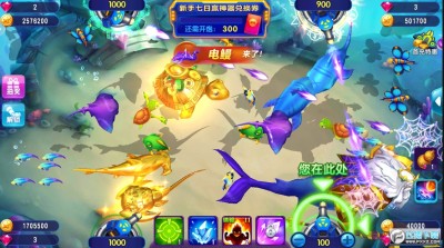 2、前所未有的独创攻击,多级渔网,超级激光炮,闪电炮,让捕捉的鱼数加倍,金币加倍;