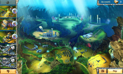 《珠宝传奇(也可以翻译为宝石传奇)2: 亚特兰蒂斯》采用的是交换消去的经典模式,其游戏内容大致分为三个阶段,1通过消去去掉背景上的蓝色方块,2收集一定数量的规定方块,3将金块总最上面移动下来。游戏是由大鱼公司发行的《宝石传奇:生命树》的续作。与前作类似,通过消去所获得的金币能够重建各种建筑物,改变背景上的环境。