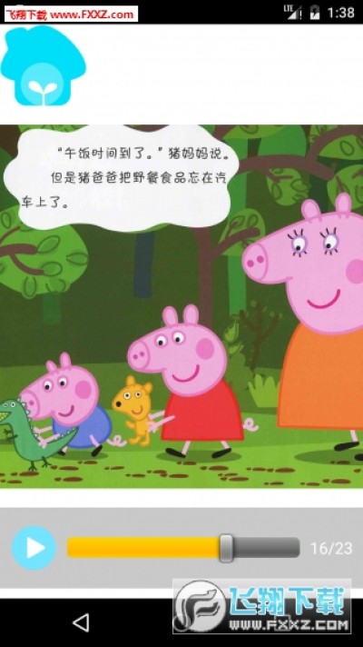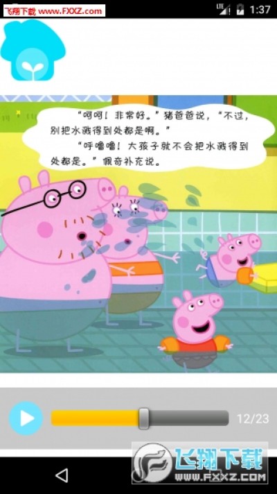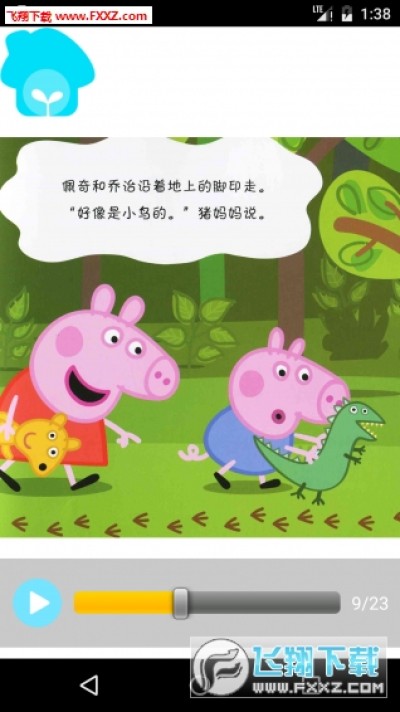 小猪佩奇有声故事app是根据动画片粉红猪小妹而来的,非常简单,以讲故事的形式给宝宝看,适合启蒙阶段的孩子听和看,也可以当睡前故事。对于喜欢粉红猪小妹孩子一定会喜欢的。
