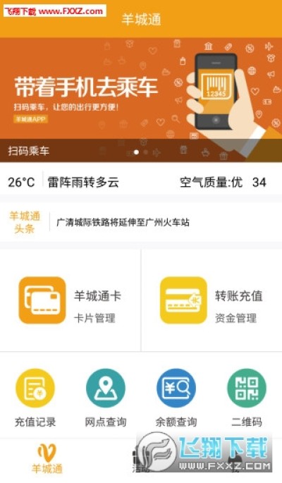 羊城通app推出了乘车二维码,以后出门不用带零钱和公交卡了,只需要一个手机就可啦,非常的方便,羊城通app能够直接获得自己的乘车二维码,乘车的时候只需要将二维码对准子收费终端扫描就可以了,以后出门在也不用担心没零钱啦,需要的朋友赶紧下载吧。