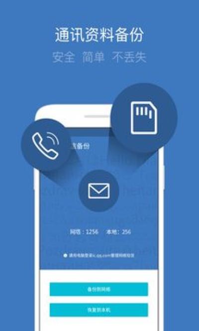 QQ同步助手是一个1亿人选择使用的同步工具!是一款在苹果app store及google play均排名第一的手机备份软件。能够全面备份通讯录,短信,通话记录,省时省力省流量,还能通过登入ic.qq.com,对电话本进行专属云端资料管理。