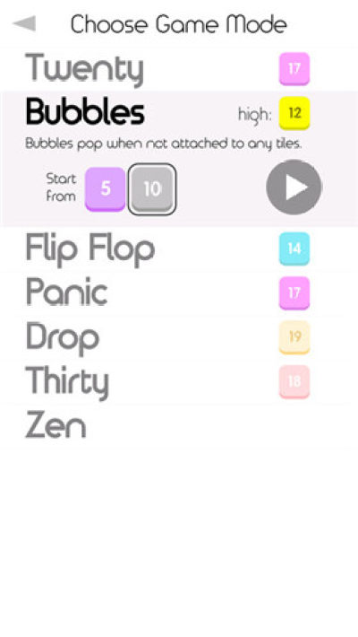 《Twenty》:Twenty是个数字消除游戏,游戏里以将相同的数字组合并得到更大数字为方法,并最终取得20即可获胜。另外游戏如果玩腻了的话还有同屏对战模式,适合两个人共同消遣。