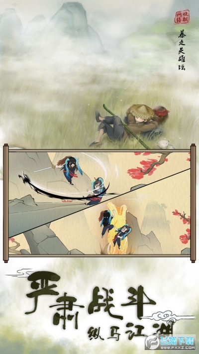 江湖世界,人物、场景全部采用黑白漫画风格设计。