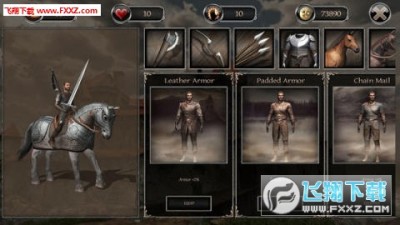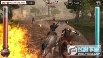 游戏中,玩家扮演一名神秘骑士,为了给被掠夺的家园报仇,踏上了危险重重的复仇之旅。角色骑着战马,带着长剑和弓箭在道路驰骋,玩家通过重力感应控制角色的运动方向,当角色手持长剑时,左右滑动屏幕可做出劈砍攻击动作,点击角色身后背着的武器则可以进行武器切换,当角色手持弓箭时,可通过点击控制弓箭射击。