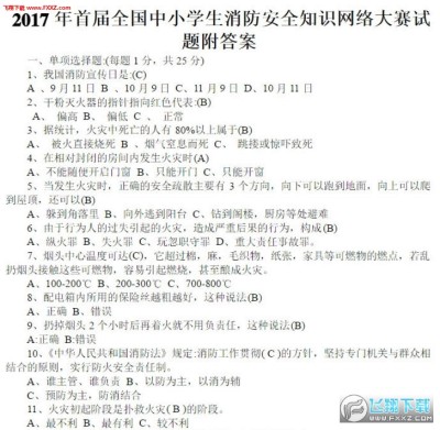 2017中小学生消防安全知识网络大赛是为国家消防总局为贯彻落实全国中小学生的消防意识培训,增强中小学生消防安全意识以及自救能力所提供的网络知识竞赛,小编这里为小朋友们提供了最新的试题以及答案,要认真对待这次消防知识的学习哦~