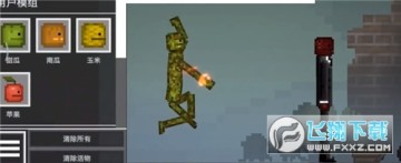 1、我们进入游戏后,选出一个甜瓜人,任何点击火焰将甜瓜人烧成黑色;