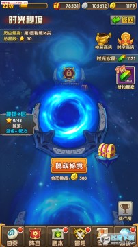 时光秘境每天有一次免费的挑战次数,还可以花费少量金币挑战激活额外的挑战次数。