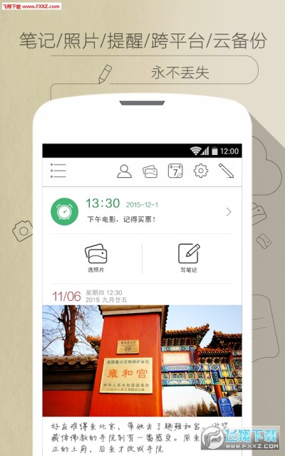- 丰富的笔记体验,包含文本模式和清单模式,支持拍照、图片、录音、手写、涂鸦和文件