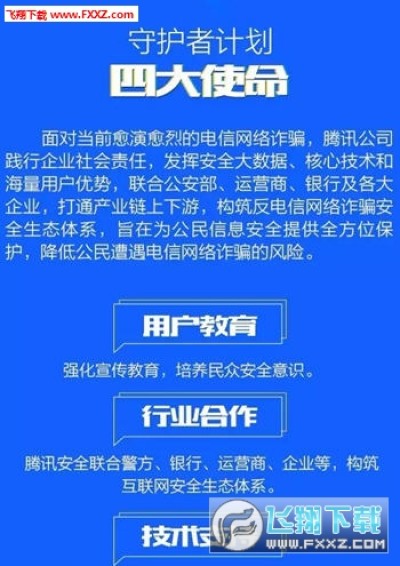 腾讯发起了“2017守护者计划”。这是在2016年腾讯创建的全国首个公司级反电信网络诈骗及黑色产业链的企业社会责任平台——守护者计划的基础上,进行的全面升级。