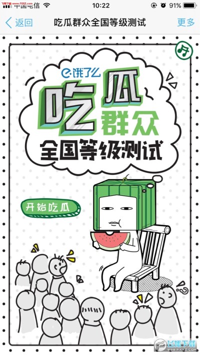 饿了么吃瓜群众全国等级测试已经正式上线,小编给大家带来了饿了么吃瓜群众全国等级测试入口,炎炎的夏日当然要配上瓜,吃瓜群众那么多,到底谁才是合格的吃瓜群众,那就赶紧来测测吗,看看你的真正吃瓜实力,喜欢的朋友赶紧行动起来吧。