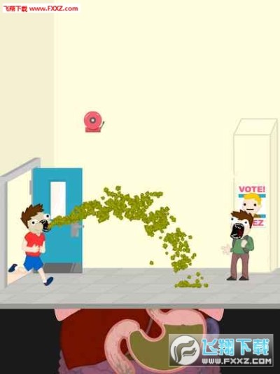 戏中玩家扮演一名闹肚子的学生,利用自己的呕吐物和敌人进行战斗。游戏风格十分搞怪,喜欢这类游戏的玩家不要错过哦!本作的小男孩主角被设定为非常讨厌鸡蛋,一吃鸡蛋就会作呕,但他偏偏不幸跌落一个巨大的鸡蛋中,在遭受呕吐之余还要被母鸡追赶,就此一场冒险就此展开。胃液中总是有呕不完的物质,利用呕吐物攻击敌人,使得敌人在身体和心理上遭受双重打击。游戏内容虽然有点重口,但是部分玩法还是值得肯定的,而且玩家想要打高分,还是不要一定技巧的。