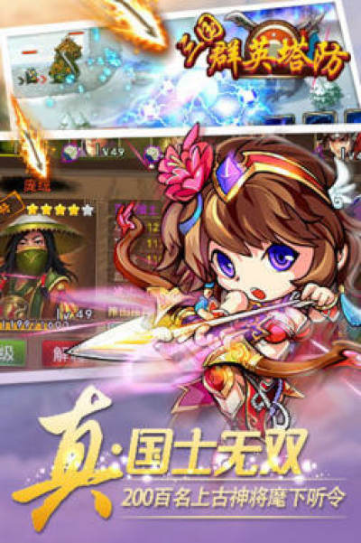三国群英塔防以著名战役为关卡、以各种古代兵种为攻守单位,通过布置兵种布阵升级、发动武将技能、释放锦囊妙计,巧妙的击败进犯的敌兵。武将“必杀”技能系统效果爽到爆!“锦囊”妙计出奇制胜扭转乾坤!大敌当前、兵临城下,你还在犹豫什么?赶紧指挥千军万马创立功勋吧!自古巾帼不让须眉,许多三国题材的游戏将原著中的女性角色以武将身份重生,让她们能与关羽、张辽、周瑜等英雄并驾齐驱,既养眼又强力,让玩家们大声叫好!