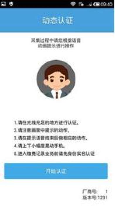 在“动态认证”模块,根据页面上的相关提示,选择“开始认证”,进入脸部识别页面,根据要求进行认证;