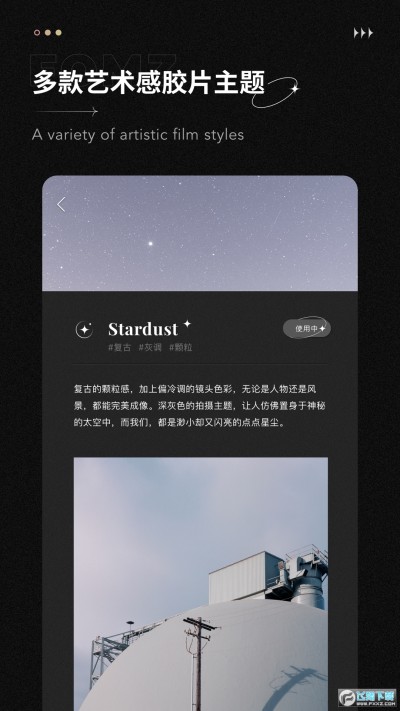 每款相机主题都在保留了胶片相机特有质感的同时,也为它赋予了更多的意义和场景,让你在生活中无论哪种场合,总能有一款Fomz Film能与之契合。