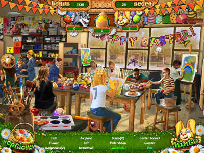 复活节收蛋大行动2是一款寻物的解谜游戏,游戏是以西方的复活节作为主题,与主人公迈克、艾玛还有他们的同学过一个愉快的复活节。画画、寻找彩蛋、巧克力兔子,这些都是西方传统复活节的标志之一,游戏中需要根据名单寻找的东西有很多,当然最重要的还是寻找藏起来的彩蛋。