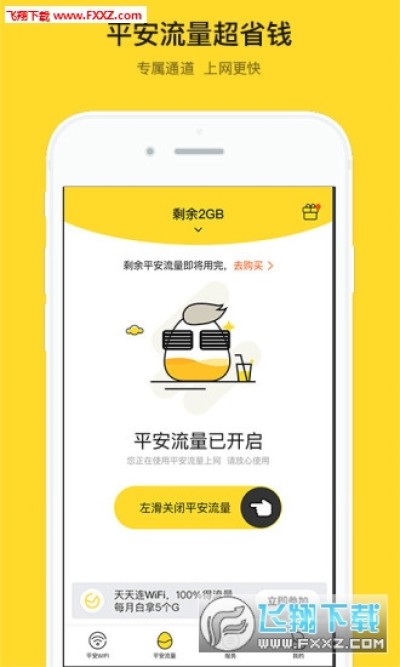 三大运营商全覆盖,注册即领100M平安流量;流量专属通道,上网更快;
