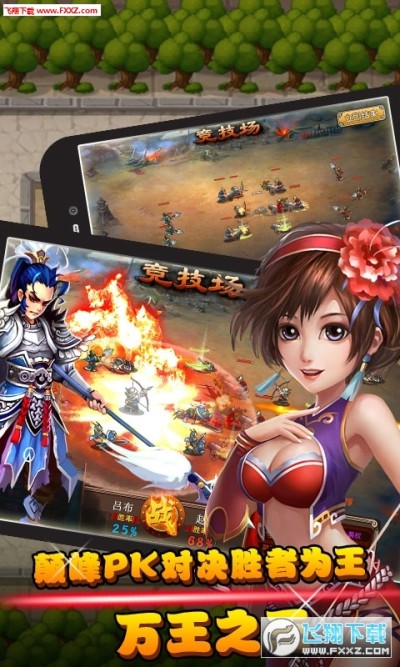 萌系人物,Q版造型——Q版的人物造型,萌态十足,更有红唇皓齿、一笑倾国的美人,为英雄增加属性,助竞技场耀武扬威!200多名传奇历史武将让你尽收帐下!