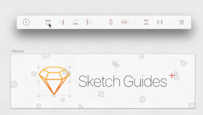 Sketch Guides 拥有自己的单独的 Tool Bar ,使用快捷键 ⌃⇧V 即可打开功能菜单,或者你也可通过 Sketch Runner 来呼出菜单,相当的方便,无需记住更多的快捷键或者去顶栏中去点击功能。