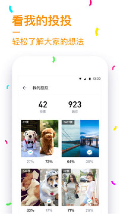 可以发布自己的图片投票,分享给朋友,和好友一起玩。
