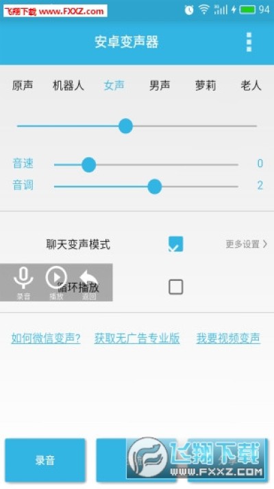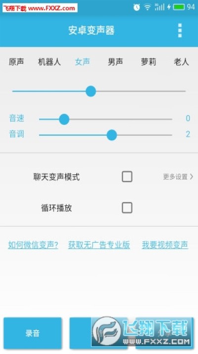 安卓变声器是一款支持微信变声以及各种声音效果变化的声音处理软件,包含系统预定义的男声、女生、萝莉、老人、机器人等效果,还支持用户自定义切换各种声音效果,并可以通过QQ、邮件等聊天工具将变声后的音频共享给好友,更重要的是它支持通过微信语音发送变声后的声音,虽然步骤有点复杂,但这是目前能实现此功能的方法,并且加入视频变声功能,可将变声视频分享到QQ空间哦。