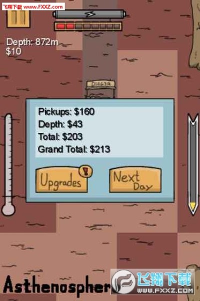 当玩家拥有一台各项性能超强的机器时,将在挖穿13 个不同颜色、硬度、温度的土层后抵达长城脚下!游戏中可以升级的主要内容包括钻地机的血量、钻头、引擎、冷却器、转向以及雷达。