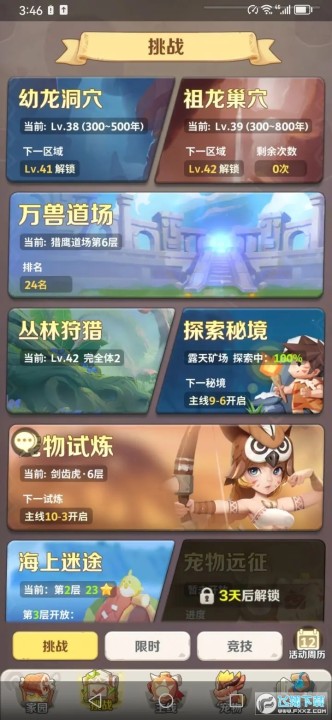 傲娇的长毛象,呆萌神兽小菜叽,可御可攻红暴龙,千种宠物等你捕捉!快来解锁你的原始宠物小分队,成为原始部落英雄!
