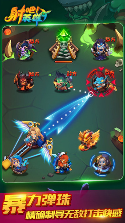 暴力弹珠,精确制导无敌打击快感 弹珠的神奇特性——反复、多点攻击,释放出让你意想不到的打击效果,无需放大招,单英雄也能斩杀全屏敌人。