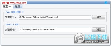 第一次启动时,软件会自动查找系统中的Jre安装目录,如果没有找到会提示你配置SDK,可以点击菜单[工具]-[配置SDK]对JDK进行配置,如下图。JDK的安装路径必须配置(如果不配置,则无法进行修改操作),Android SDK则随意(有些功能需要用到它,比如ddms等,但这些功能都无关修改工作)。