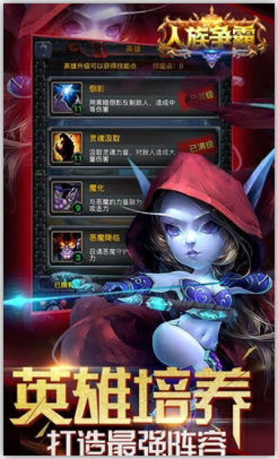 《人族争霸》中,玩家们可以通过国王祭坛召唤多个不同种族、不同职业的英雄角色。游戏中,每个英雄都可以升星、穿戴装备,同时英雄携带的士兵越多战斗力越强。