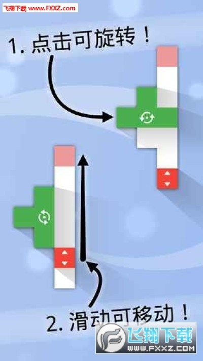 游戏的玩法就是要把关卡指定的图形移动到规定的位置上,指定的图形的移动方向有时是四个方向通用,有时只有两个方向。如果想要把指定的图形移动到规定的位置上的话,就得要移动其他的图形。