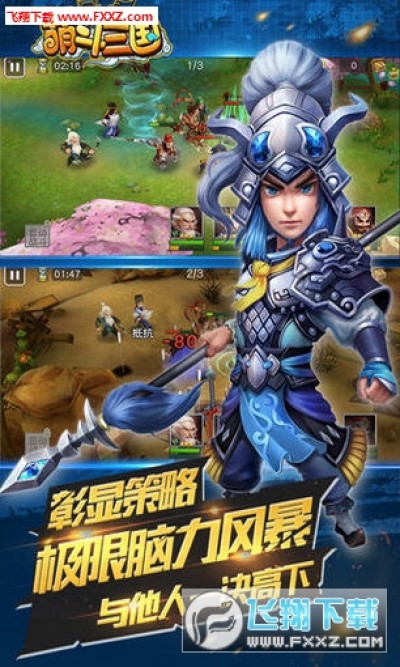 《萌斗三国》是创新型3D策略、动作精品!以3D酷炫动作战斗为基础,独特的军团城建系统,紧张华丽的攻城战,时尚靓丽的角色,富有深度的游戏策略性。针对每一类玩家心理的游戏体验式设计,每种玩家都可以在游戏中找到自己的追求和乐趣。
