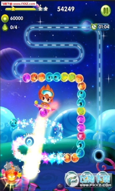 易于上手,难于精通,不一样的祖玛玩法突破你的想象,挑战手速极限!与来自星星的都教授并肩作战,星空中感受泡泡的炫丽碰撞!