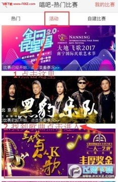 在搜索条中搜索你要唱的歌曲名,在结果中点“演唱”