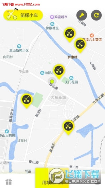 1、用户注册手机账号,进行实名认证、交纳押金或充值后,即可扫码用车,用车行程结束后分享给qq、微信好友,邀请好友加入笛檬小车,还可获取信用分或奖励金;
