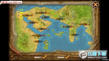 第三、图中代表港口的那些点为什么颜色不同? 港口在地图里的颜色分为绿色、蓝色、紫色、金色四种,由低到高,分为能提供两种货物到五种货物。绿色为港口初始状态,就是投资金钱在10万以下的,能够提供最初级的两种货物;蓝色为投资金钱在10万~100万以下的,能够提供3种货物;紫色为投资100万~1000万以下的,能够提供4种货物;金色为投资1000万以上的,能够提供5种货物。越高级的货物,售价越高,出售时获得的利润也会越高。