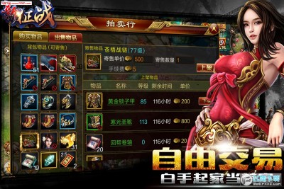 自由交易:见面邮件拍卖行,只要不绑定,全都能交易 能野战,能交易,能转职,能领工资 你们想要的完全自由,我们都努力做到!
